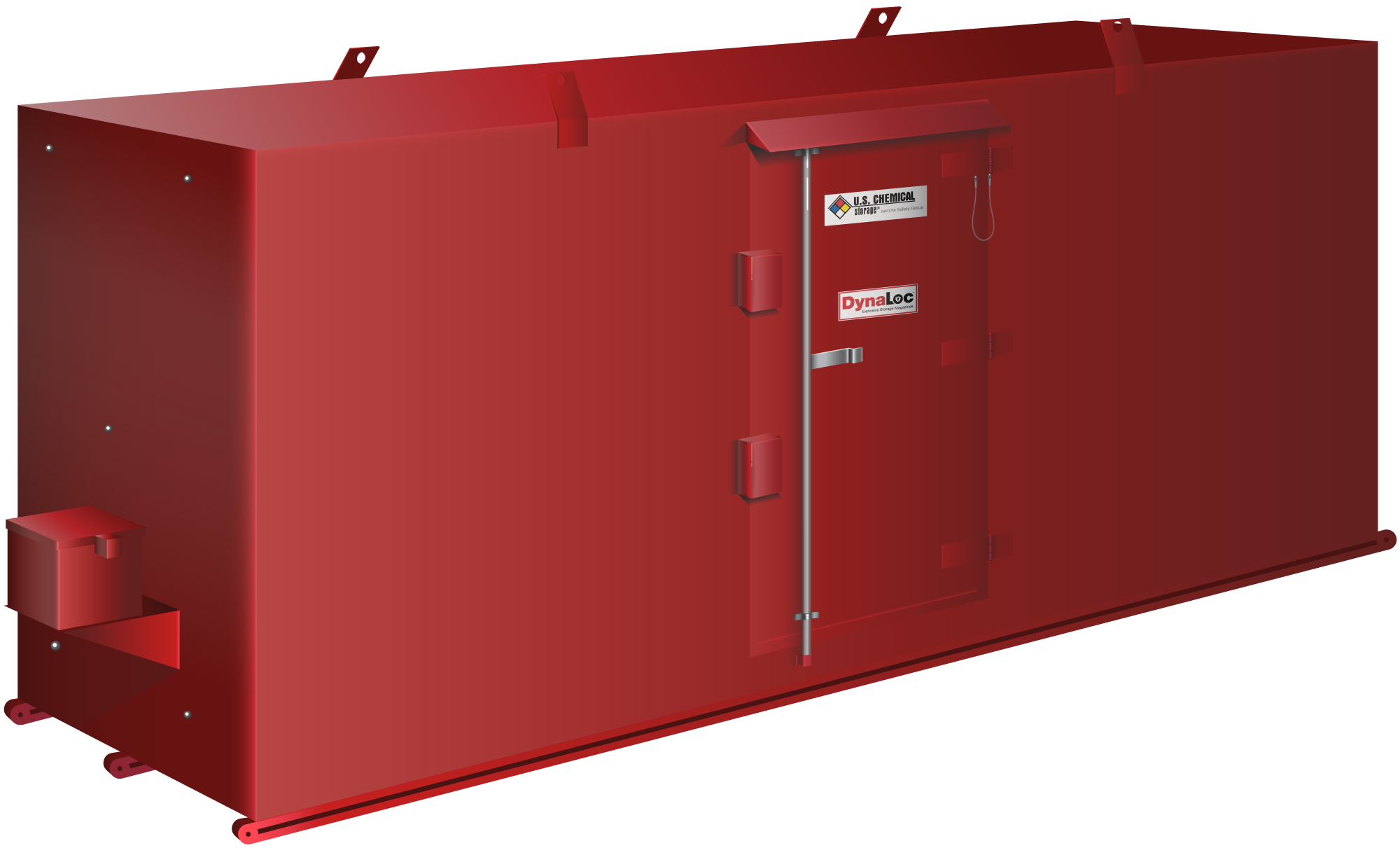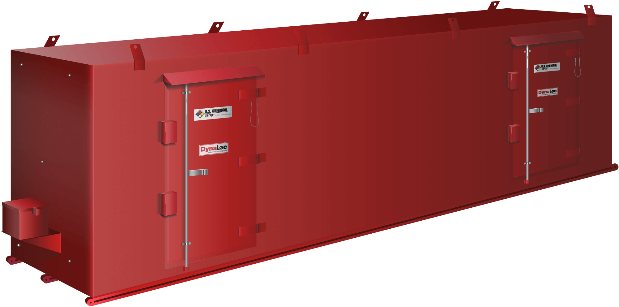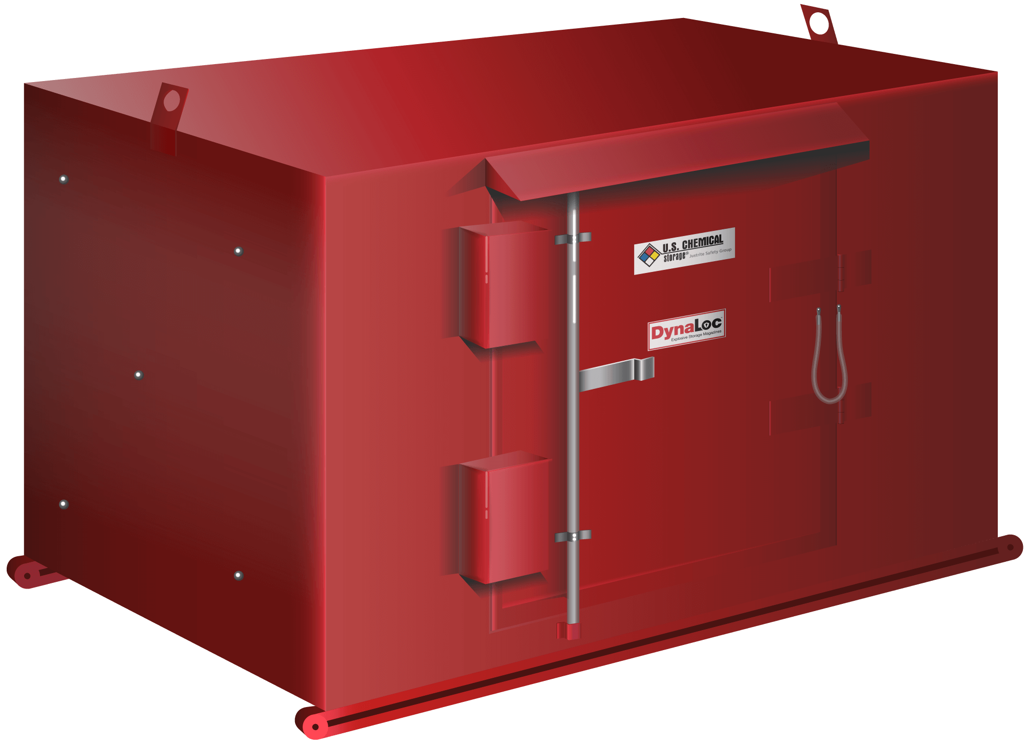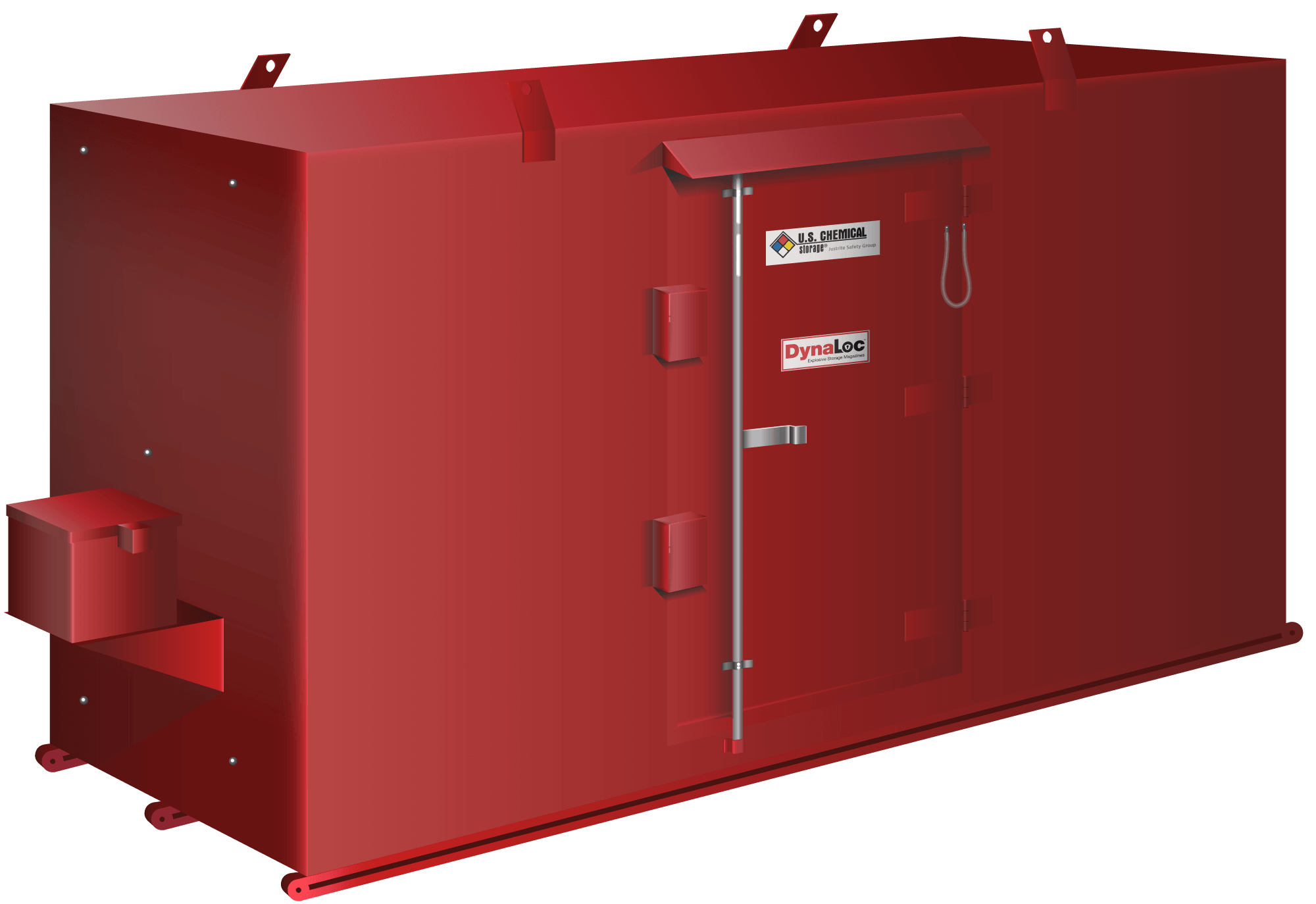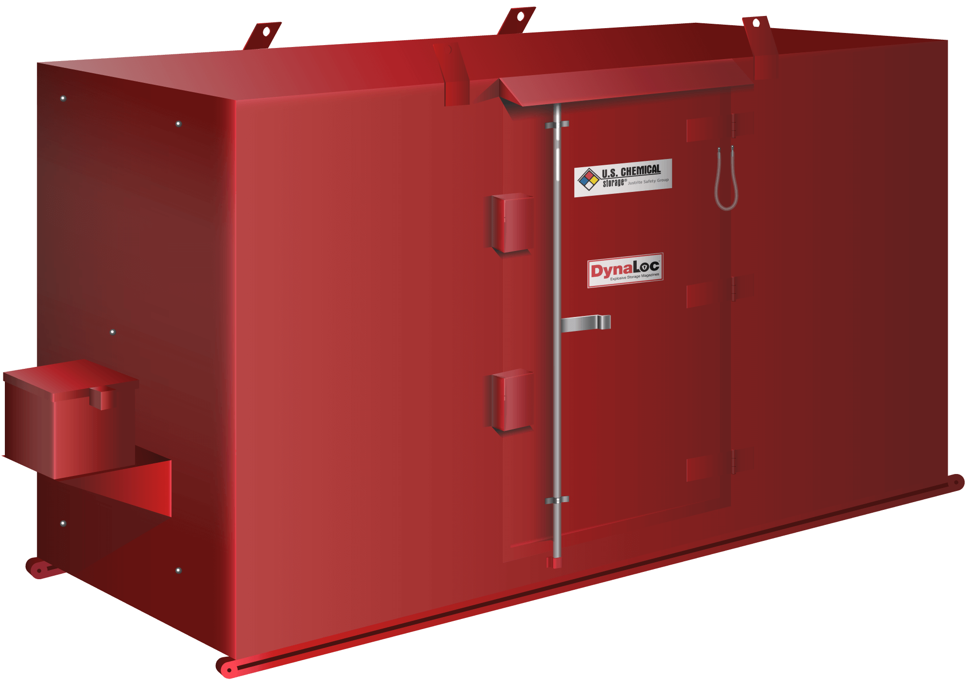 U.S. Chemical Storage engineers durable Type 4 explosive magazine storage for indoor or outdoor storage of your low explosives. Each explosive storage magazine features forklift pockets and crane lifting eyes for easy relocation.