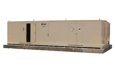 We offer many C1D2 FM-approved units as well as C1D1 models with explosive panels. All our buildings are EPA, OSHA and NFPA compliant. All secondary containment sumps are properly sized for regulations and leak tested prior to shipping.