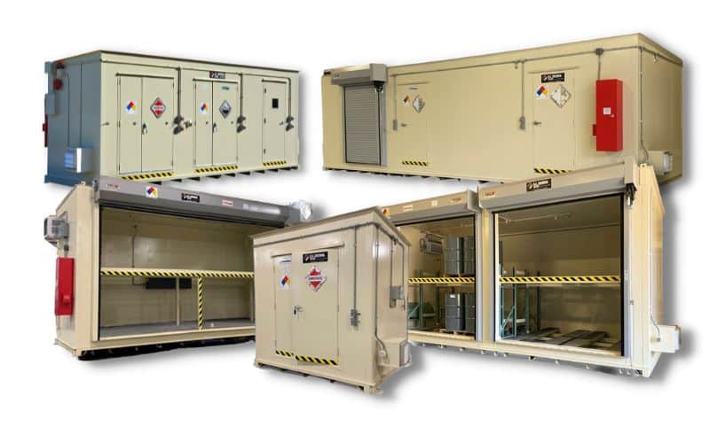 A “locker” is often considered a “building” when the size is larger, and options are added. They can have features to store and allow access to drums, totes, bulk bags or FIBCs, palletized materials, gas canisters, and tanks. They can also be designed for utilization as occupancy structures for dispensing, mixing, housing equipment or laboratories(each of which may have additional codes, regulations, or institutional best practices that should be followed).